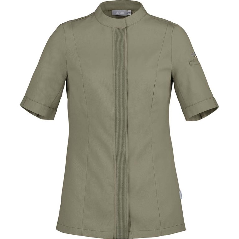 Col officier | Poche sur manche gauche | Galon sur milieu devant. Devant fermé par pressions cachées | Patte dos avec un galon et fermé par une pression permettant de maintenir un tablier | Fentes dos